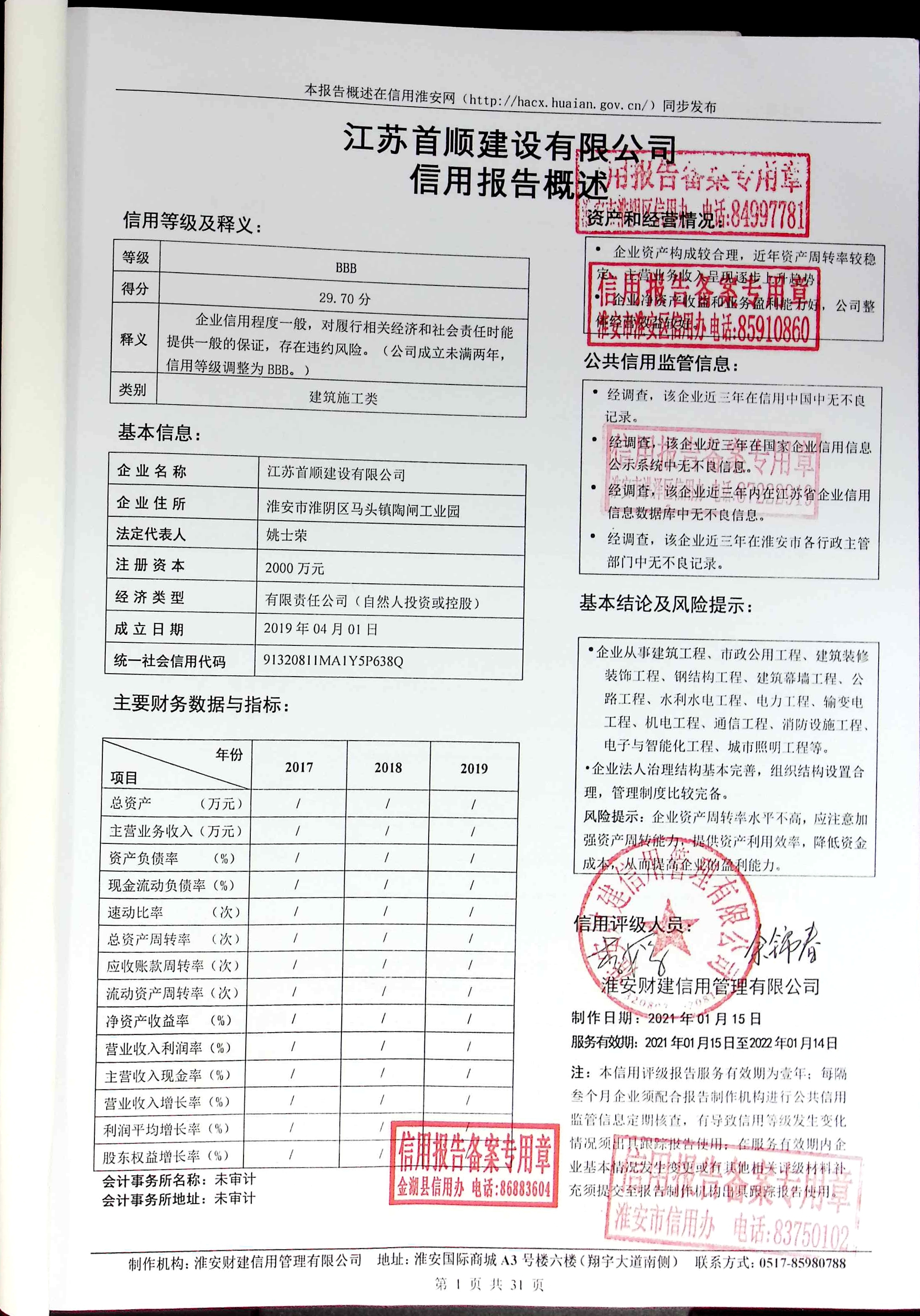 信用报告公示